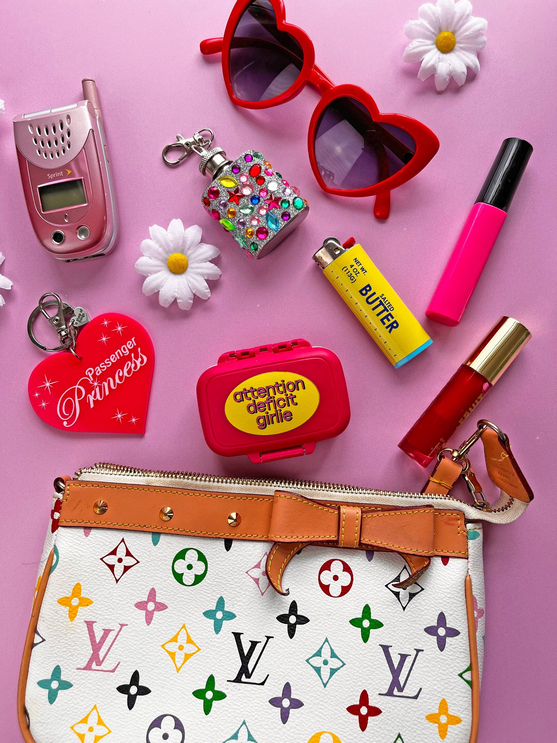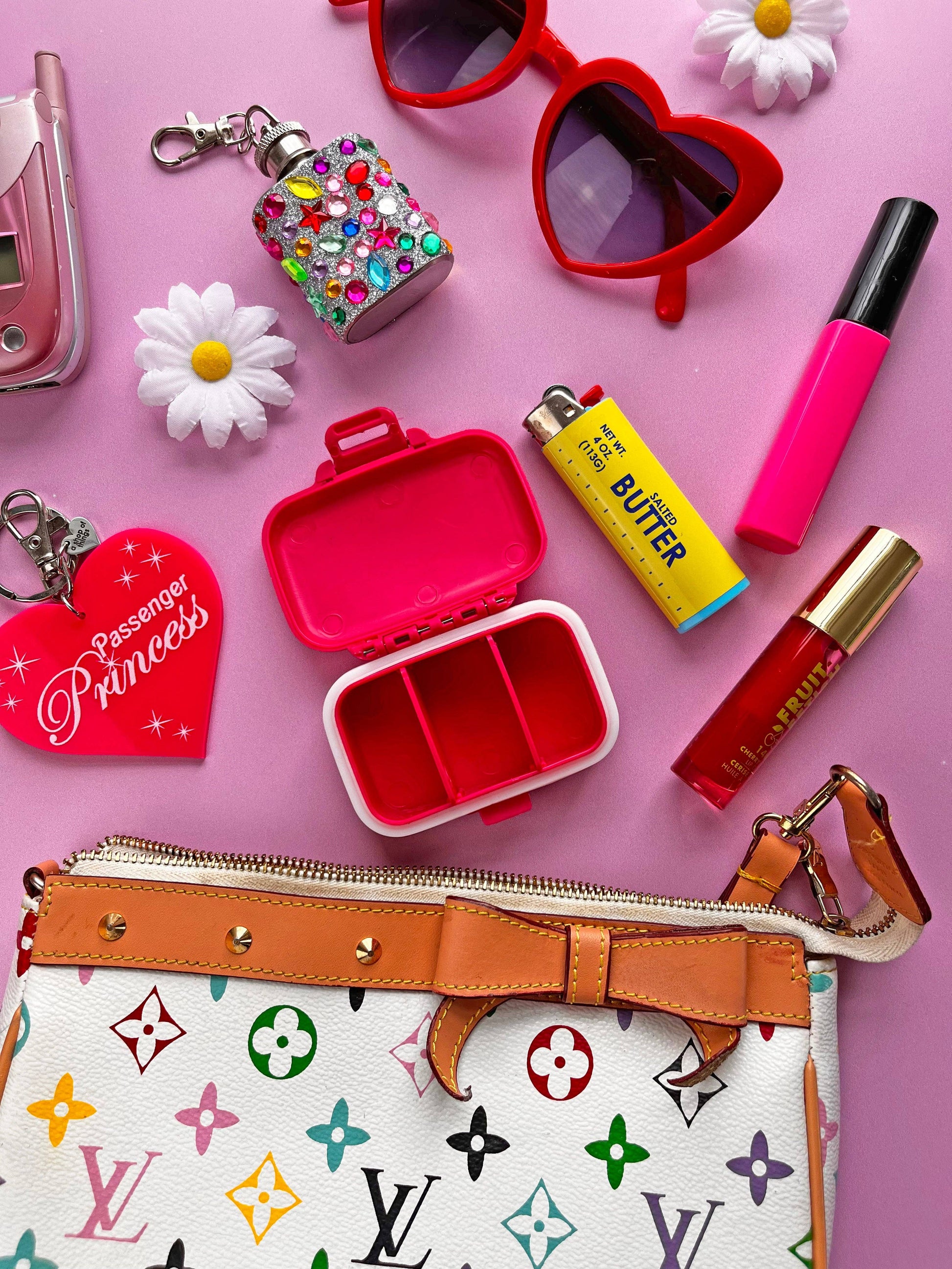 For ADD girlies on the go! Carry your meds and vitamins in style with this pink pill case that has two convenient, removable dividers on the inside that creates 3 separate compartments . Shaped like an adorable mini suitcase. Water proof + smell proof! Brought to you by A Shop of Things in Nashville, TN!