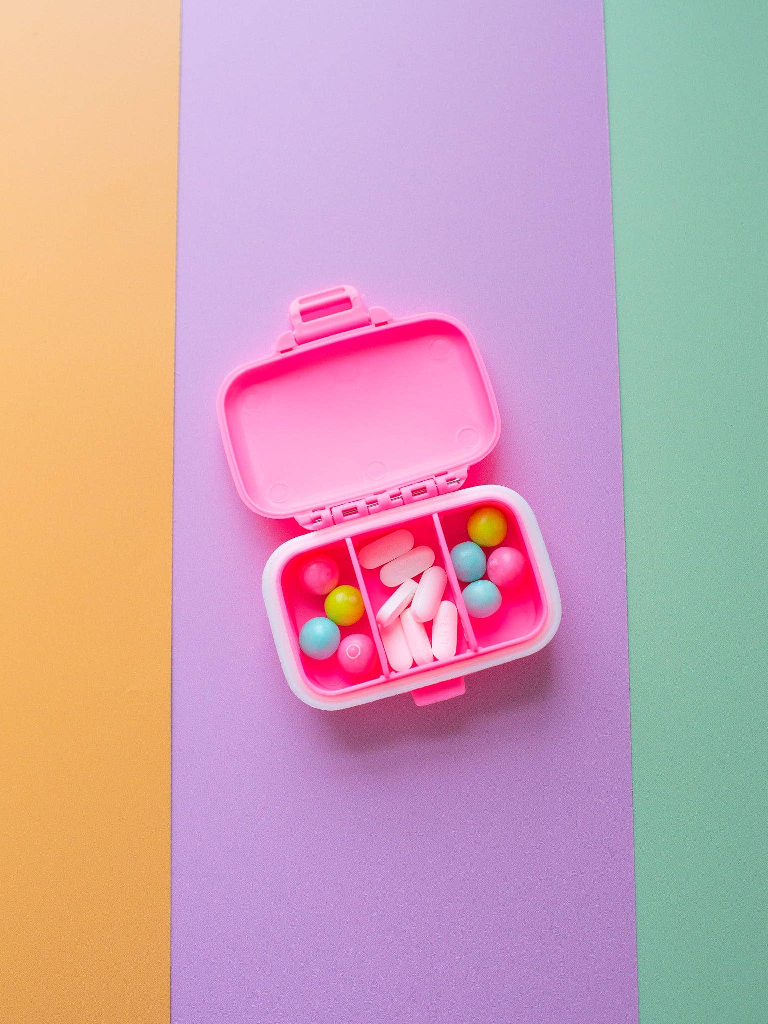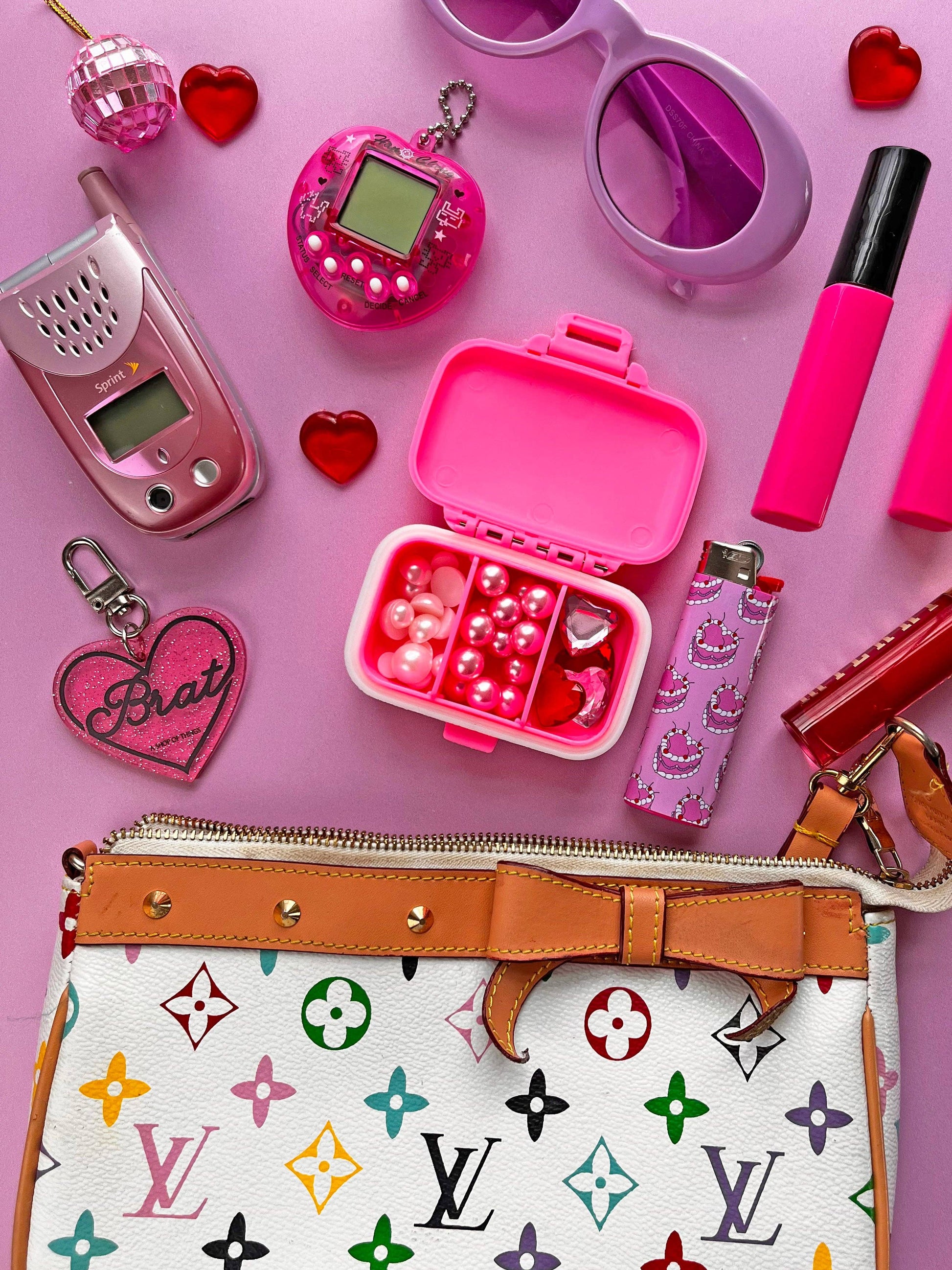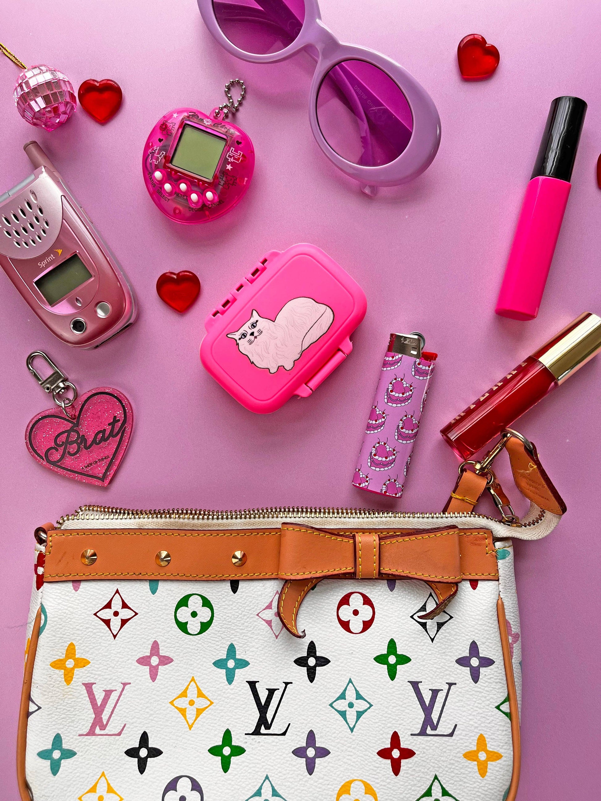 I hope your cat doesn't need medicine but in the case that she does.....! Carry your meds and vitamins in style with this pink pill case that has two convenient, removable dividers on the inside that creates 3 separate compartments . Shaped like an adorable mini suitcase. Water proof + smell proof! Made by A Shop of Things in Nashville, TN!