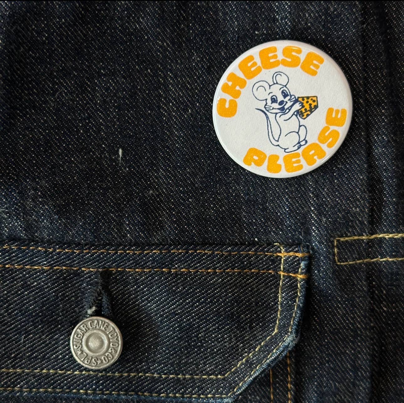 Cheese Please! The enamel pin killed the 1" button... but the 1.75" Button lives on! ... or whatever. Made in the USA by World Famous Originals!