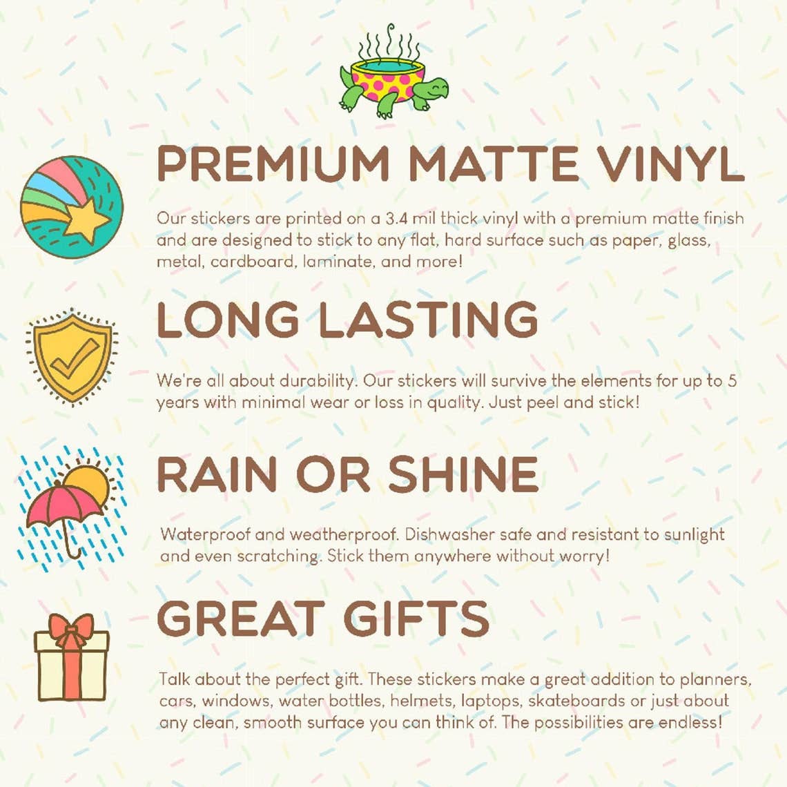 π’ Printed on thick, ultra-durable vinyl, these stickers are made to last. They're UV-coated making them waterproof, weatherproof, and dishwasher safe!
