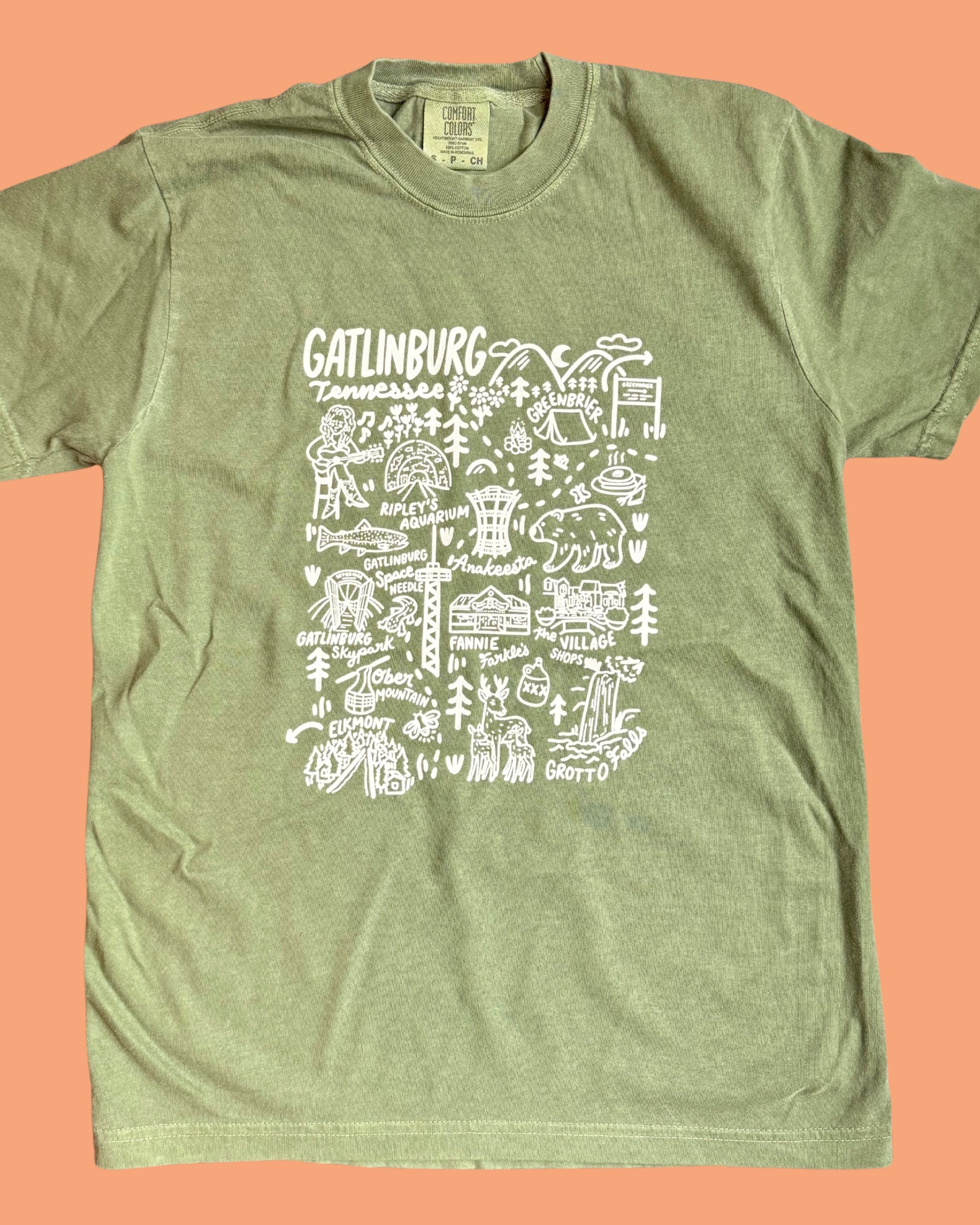 Printed on green Comfort Color tees with white ink!