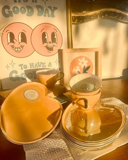 Add a touch of elegance to your dining experience with this stunning Vintage Iridescent Lusterware Cups & Plates Set. Featuring a unique iridescent design, this vintage lusterware set includes 3 cups and 6 plates, perfect for creating a charming and memorable table setting. Don't miss out on the opportunity to own this one-of-a-kind set - order yours today!